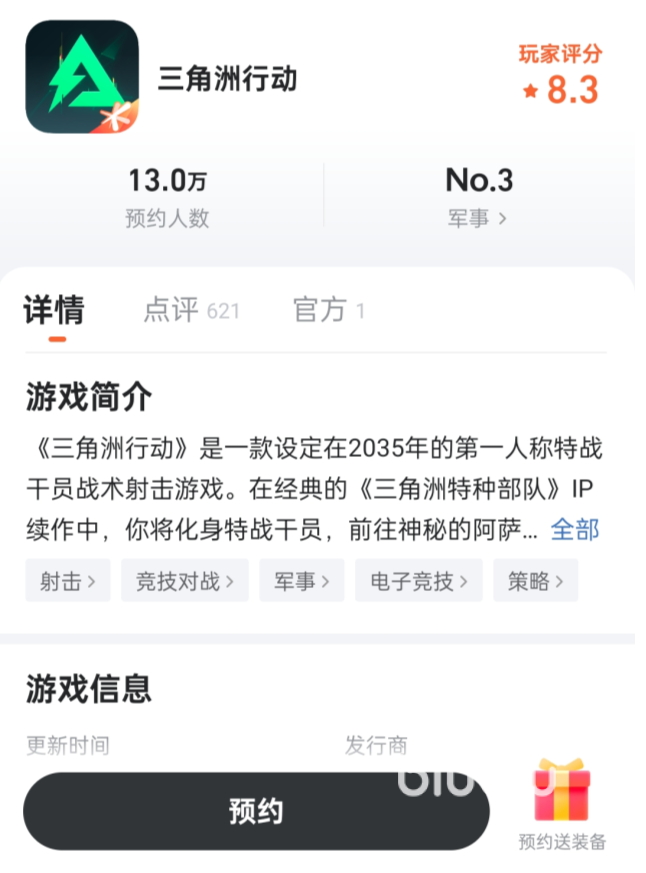 对于三角洲行动现在能玩吗的介绍就到这里,目前只有拿到测试资格的玩家才能玩,但游戏终测很快就要收尾了,公测正在路上。因此,只需在九游app中预约这款游戏,在9月份内一定是能玩得上的。