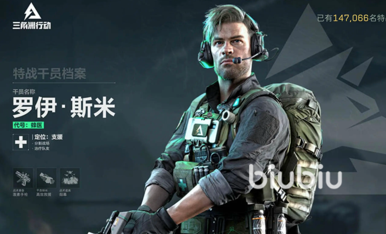 这个角色的定位主要是用在支援方面的,被动的技能是可以更快速的扶队友,特长技能也是扶队友,同时还会为队友恢复很多的生命值,他的大招技能不仅可以治疗队友还可以治疗自己,第一个战术道具可以放出烟雾,在这个烟雾中的队友对自身都会受到治疗,第二个道具是可以对敌人放出烟雾,从而对队友以及自己进行掩护。