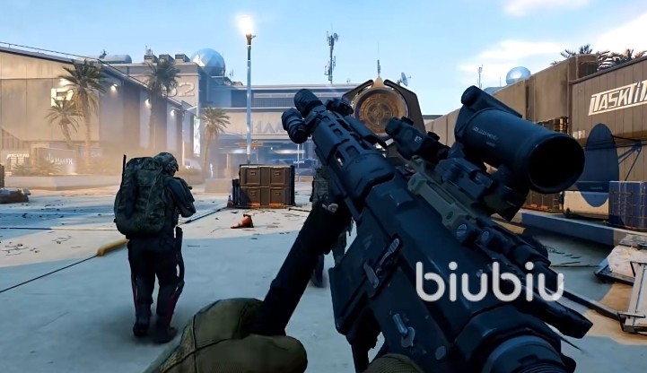 通过实机演示不难看出,这一次依旧是沙漠地貌,不过在一片黄沙中的建筑群格外醒目,其中也是有着漫天的烟尘和棕榈树。