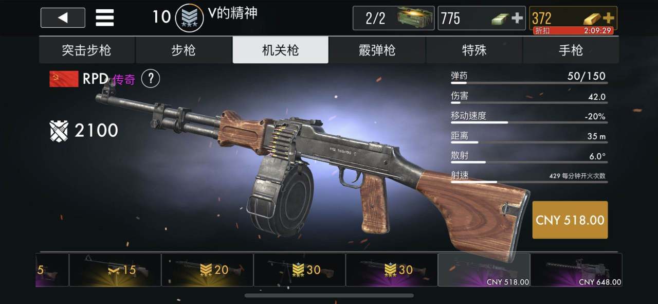 2020年07月15日 16:49 来源:秋水世界战争英雄中的武器是非常多的,各种种类的武器都在战场上发挥着不可替代的作用,而其中RPD就是一款很强大的机枪武器,世界战争英雄rpd怎么获得就是很多不知道怎么获取这款武器的朋友想知道的,下面小编教大家获取!