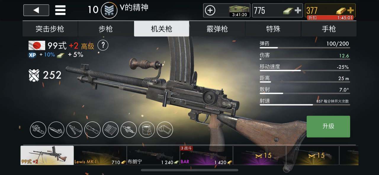 想要升级还可以使用黄金购买一下高级的账号和经验加成卡片,这样能让玩家获取到的经验值更多一些,高级账号就类似于VIP,充值了以后每一次战斗都可以获取到经验值加成,而卡片是一种道具,在商城里面可以买到,是专门用来给玩家进行经验值的加成的,使用了这两种经验加成的方式,能让玩家每打完一场对局获取的经验值翻上四倍。
