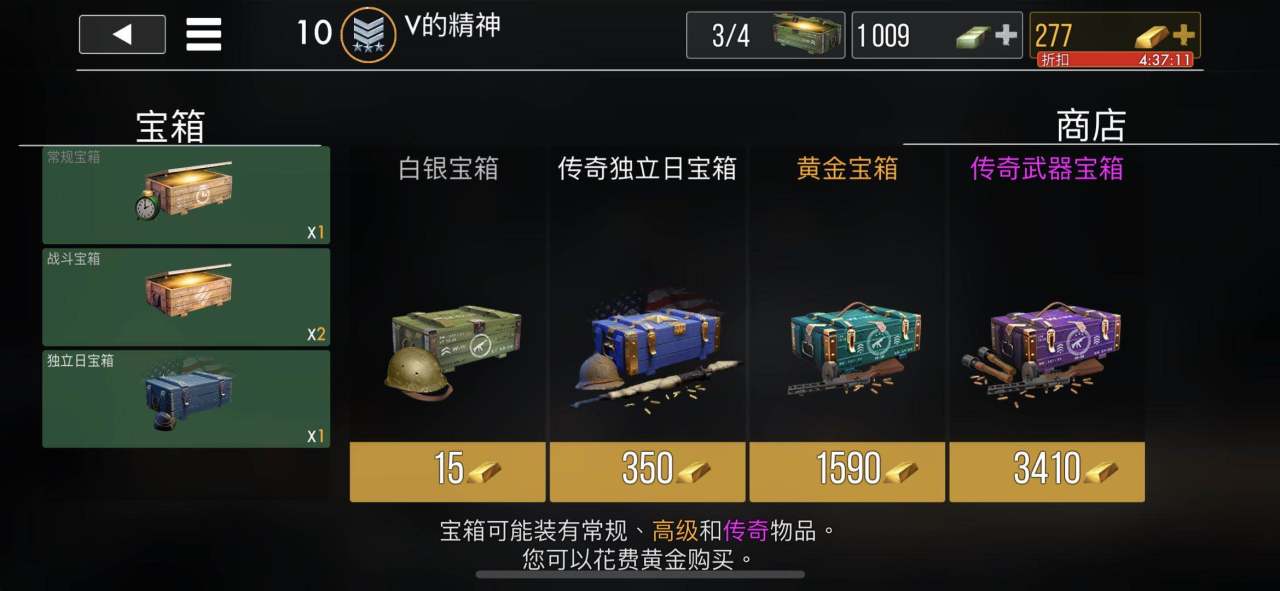 战场外宝箱的开启瞬间开启的就不说了,耗时间开启的宝箱也是有好有坏的,打开游戏的宝箱界面,就能看到右边摆着几个用黄金才能购买的宝箱,其中十五个黄金的宝箱比较垃圾,最好的宝箱是三百个黄金一个的宝箱,买了就开,有很大的概率能获取到烟花枪。如果想加速宝箱开启,还能点击加速然后观看一小段广告,就能加速很长时间了。