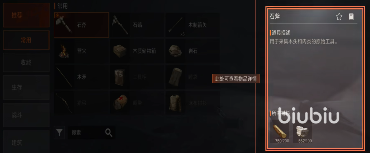 一般来说前期可以先制作一些小物品,例如让你提升砍伐效率的斧头或者石镐。将其制作出来之后就可以更快获得大量的材料,不过刚开始时,大家肯定优先制造一些更有用的东西。因为到了下一个阶段之后就会出现大量的猛禽,被他们消灭的话就宣告失败了。