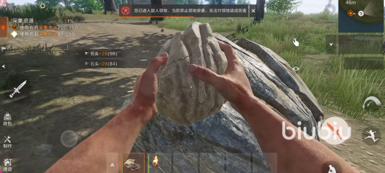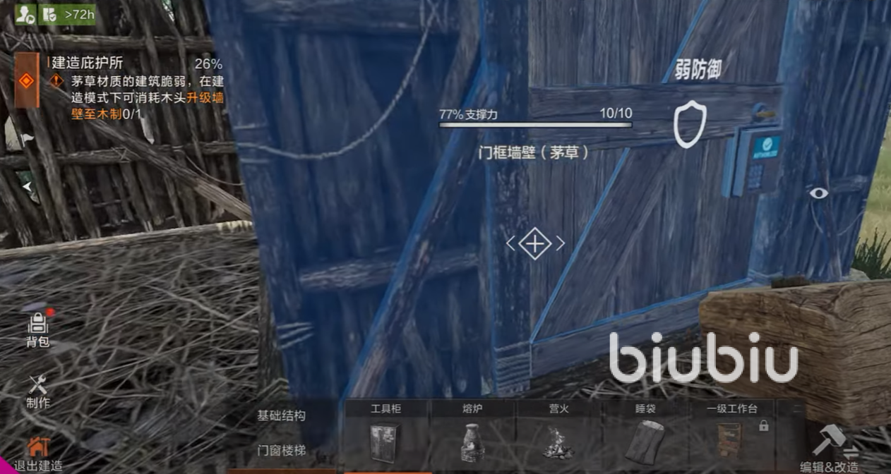 玩家最初只有一块石头和一根火把,需要在野外采集木材、石料、金属等资源。同时要应对饥饿、寒冷、口渴、动物攻击和天气变化等生存挑战,充沛的探索和持续的危机感是游戏的常态。利用收集到的资源,玩家可以建造木屋、石墙、铁门、瞭望塔等各种防御设施,抵挡环境威胁和敌对玩家进攻。值得一提的是,失控进化里是有“承重概念”的,在建造时需要考虑结构重力和支撑点,否则房屋可能会坍塌,这为建筑增添了策略维度,玩家需精心设计基地的结构布局。
