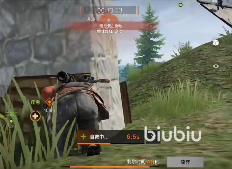 另一种救援方法就是自救,自救的方法就很简单,直接在原地进行治疗,治疗的时候需要在原地等待一会儿就可以了,不过这个自救要确保周围没有敌人,这样就可以趴在原地进行复活,但是要是有敌人补刀的话,那么自救状态是无法实施的,最后就是被直接淘汰。