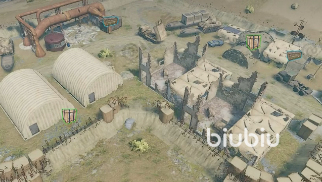 完成后需要进入第五个资源点军事基地,这资源点很小大家进入后需要往前走,在前方第一个大棚位置可以找到一个箱子,之后往前走在加油管道位置可以找到第二个箱子,找到后沿着路往右手边走,在右手边帐篷位置可以找到两个箱子,找到后这资源点就完成探索了。
