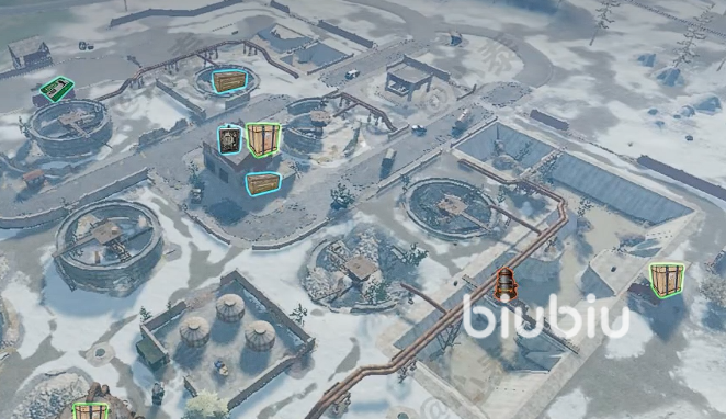 游戏中资源点有很多,这里需要按顺序来带大家看,那么按顺序来的话,这第一个要带大家看的资源点叫做污水处理厂,当大家来到该资源点的时候,需要从正面的公路进来,进入后需要先看右手边在右边可以看到一个板条箱,之后需要往左手边看,在左手边的厂房中可以看到绿卡方的开关和两个箱子,在打开开关拿到箱子后,需要往右前方走这里就可以见到绿卡房,探索完后来到前面的仓库中,这里可以看到蓝卡房大家需要刷卡进入里面有物资箱,随后需要往左手边看,然后一路走到头,这个过程中可以看到多个资源箱,完成收集后第一个资源点也就探索完了。