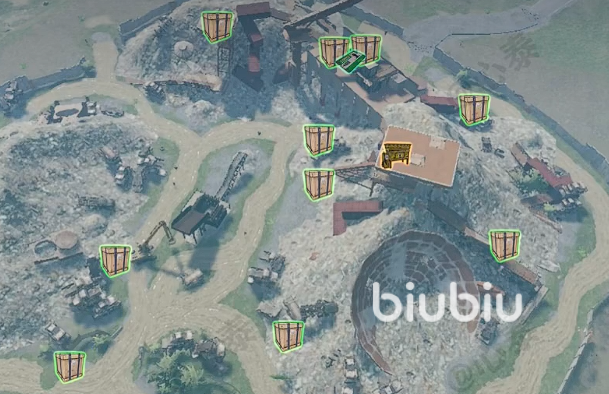 完成后就可以前往第三个资源点了,该资源点叫做垃圾场。来到这里后大家需要从正面进入,进入其中后可以看到工作间,进入其中后可以找到绿卡和箱子,找到后往左手侧的吊机位置走,还可以找到一个箱子,然后再往右手边走走到右手边的工作台附近,在这里藏有四个箱子,拿到后前往中间位置,之后往左上方下方和右下方走,这四个位置总共有四个箱子,拿全后这第三个资源点也就完成探索了。