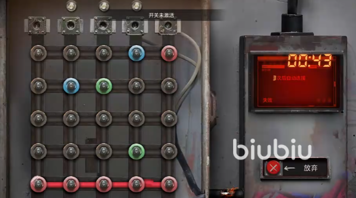 捡完去二楼,走到小房间里面放入保险丝,然后按旁边的开关,打开电路盒,这个打开方式很简单就是把相同颜色点连一起,完成后拿到绿卡,然后我们把二楼通往外面的门打开,出去左拐直接跳下来能看到绿卡房,刷绿卡进入拿资源,并通过电路盒拿蓝卡。