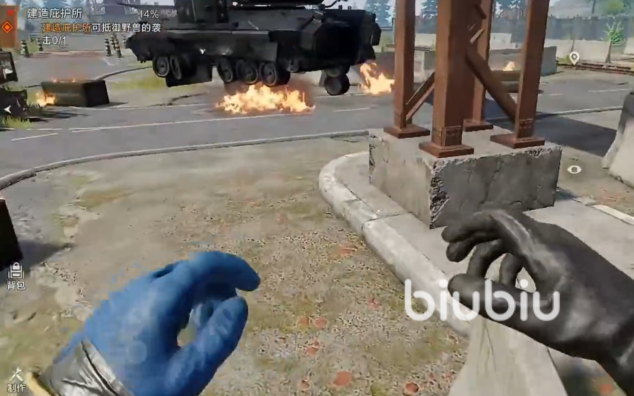 等熄灭后我们就可以开军火箱了,拿完里面的资源后,记得用镐类工具将坦克的残骸给敲碎,这样会给一些金属碎片、高级金属和木炭,这些资源对前期也是有一定帮助的。