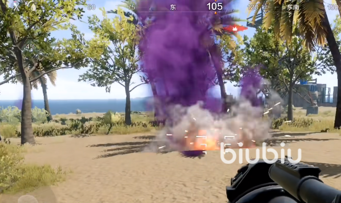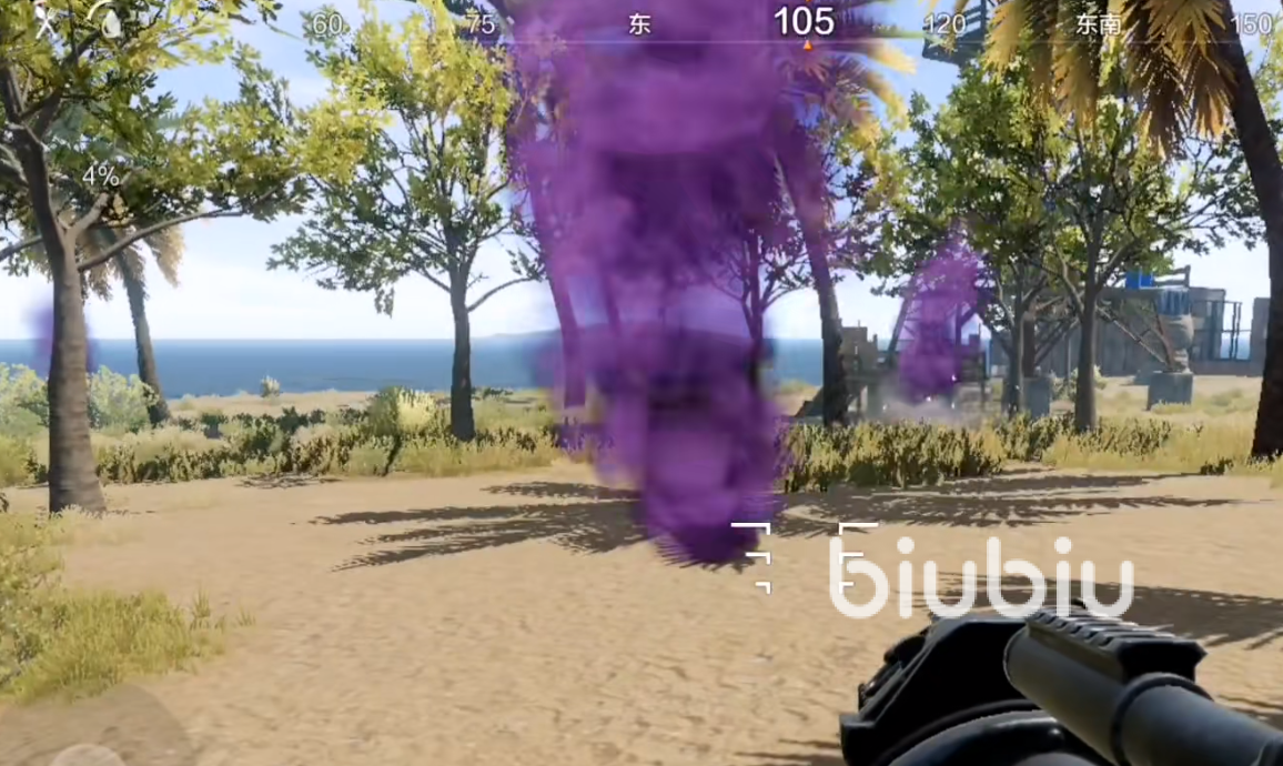 烟雾榴弹发射后会在落点生成一团浓郁的紫色烟雾,这团烟雾会随着地形的起伏和风势的变化不断蔓延扩散,形成一片视野盲区。烟雾持续一段时间后若不再补充投掷,便会逐渐消散。实战中,它的核心价值在于战场遮蔽与战术干扰:当你在开阔地带遭遇敌人追击时,一枚烟雾榴弹能瞬间切断敌方视野,为自己争取到转移阵地或布置陷阱的宝贵时间;在资源争夺的混战中,向物资点投掷烟雾榴弹,能有效混淆敌方判断,让己方趁机完成抢夺或撤离;而当队友不幸被击倒时,在其周围释放烟雾,更能干扰敌人补枪,为救援行动创造窗口期。
