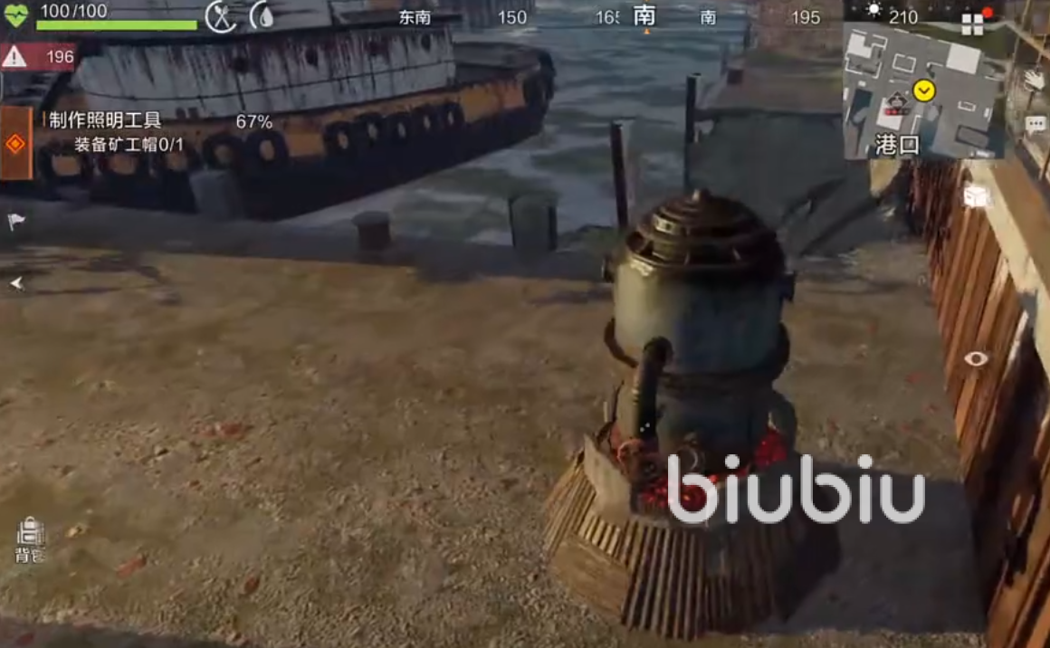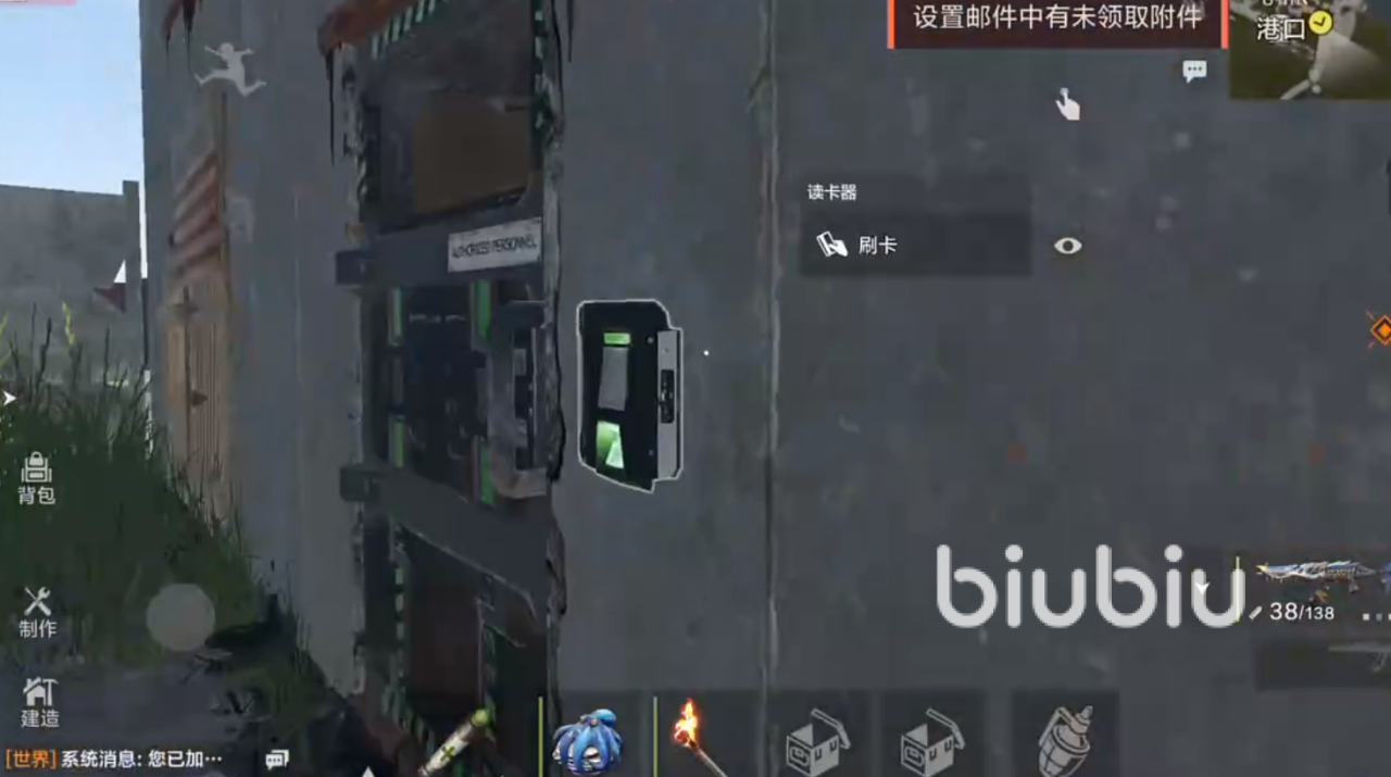 港口的整体地图不大,进入港口后,首要任务是锁定地图正中间的红色厂房。找到厂房后,别急着进入,转身看向后方——你会发现一座用木板封死的房子,这里正是刷卡的关键起点。用枪械打木板,开辟出一条通道,进入小屋。