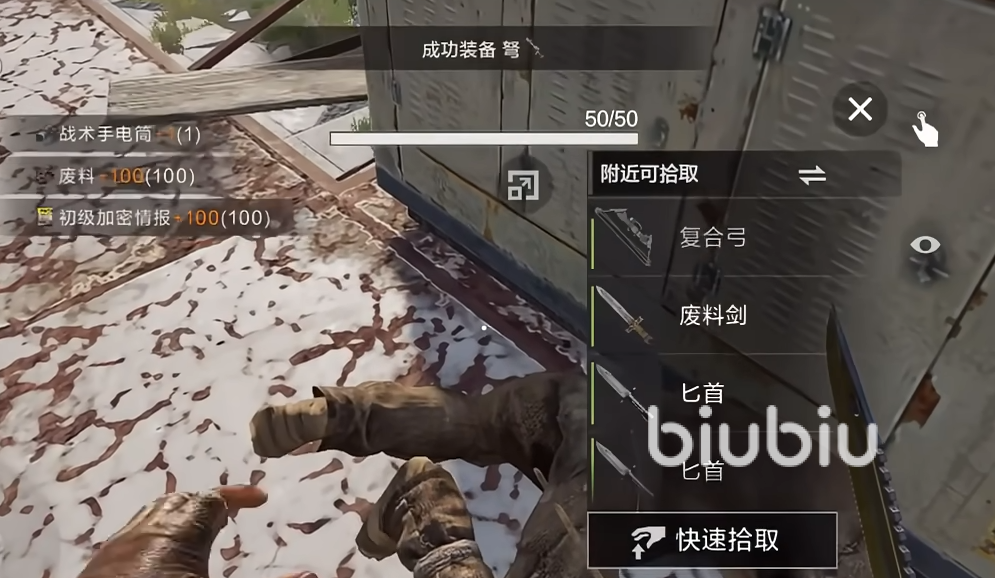 如果其他玩家在该区域比较多的话,那么可以考虑制作一个弓箭,这个在前期是对付敌人很好用的武器,缺点就是需要较多的布,这个在前期是属于比较稀有的物资。大家可以重点去收集各类的布料。一开始我们的目标优先度最高的是各类宝箱,其次是油桶,之后才是麻和各类树木和石头。油桶里面的废料是大家需要重点收集的对象。
