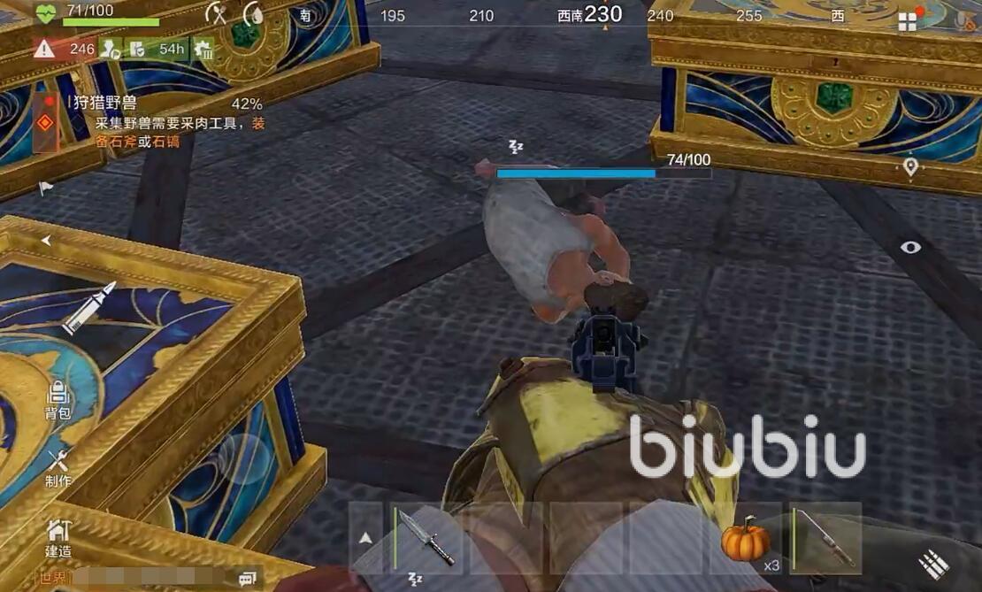 初期不要急着建造大型庇护所,先制作一个睡袋,这样可以节省时间用于制作护具,增强自身防御。在游戏世界中,你的生命值、口渴值和饱腹值是需要时刻关注的。生命值清零会直接导致角色倒地甚至被淘汰,口渴值和饱腹值清零也会严重影响你的行动能力。所以,记得及时寻找食物和水源,包括蘑菇、南瓜、仙人掌、方便食品和淡水。狩猎野生动物可以获得生肉,但最好经过烹饪再食用,直接食用生肉会导致呕吐。