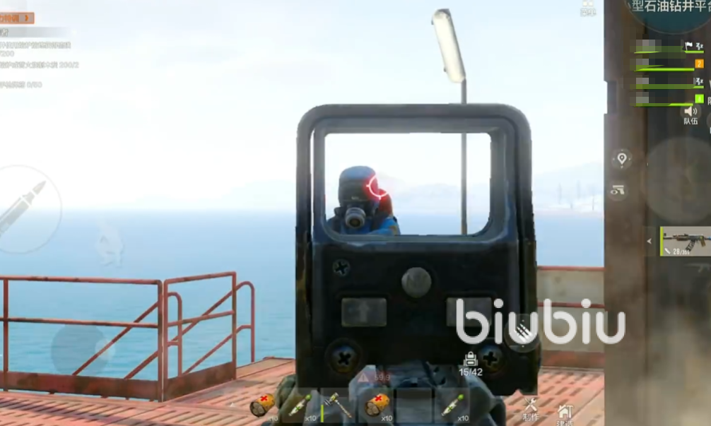 后面乘船到了油井之后,大家可以正式登上去了,会遇到一些小怪,他们的等级是比较低的,大家直接清掉即可。然后到楼上的时候会看到有三个不同颜色的小房子。通电的位置是绿色房子后面,大家成功通电之后就可以打开蓝色房子进去了,里面有一个密码箱,如果小伙伴们把密码箱上电脑打开,那么解锁的时间会增加,所以不建议大家去摸这个电脑,可以先搜附近的物资,都是大家当前比较需要的。