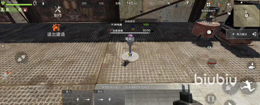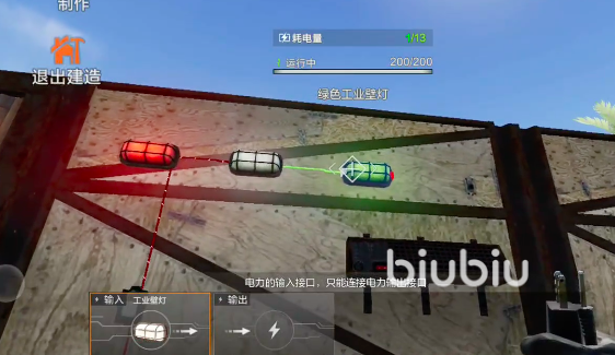 下方的连接界面,能直观反映出是否连接正常。此时面对想要连接的设备,将用电设备输入引脚,然后连接,优先点亮工业壁灯,设个工具不仅能输入电力,还能输出电力,这样设备之间就能串联了。