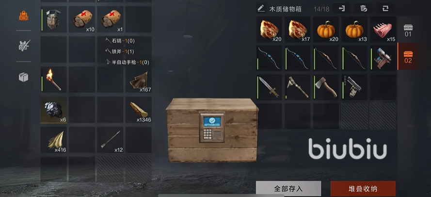 进入游戏之后,大家的首要任务就是进行资源采集,像木材,石头以及金属等资源都是要耗费很多的,所以遇到都尽量收集,这些能够打造基地。在初期收集物资时,大家可以简单制作石斧和石镐用来砍树和挖矿,提高采集效率。若是在路途中遇到了一些桶状物品,搜索一番,大家可能会找到一些针线包,绳子,分解之后可以得到布料,若是遇到了红油桶,那么还可以搜到不少油,这是比较重要的物资。