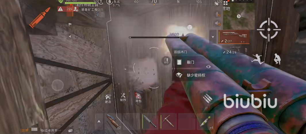 一般情况下,如果遇到别人的家是木质的,燃烧瓶,或者枪械武器基本上就能比较轻松的将缺口打开了,如果是石材打造的基地,那么就需要使用炸药或者火箭筒来破开防御了。