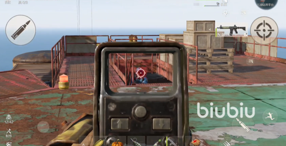 到达油井之后,首先接触到的就是一批等级较低的敌方目标,花点时间将它们一一清理掉,这个难度不大,速度也会稍微快一点;继续前行就能抵达上层的平台,这里会有红色,蓝色,绿色三种颜色的小型建筑;