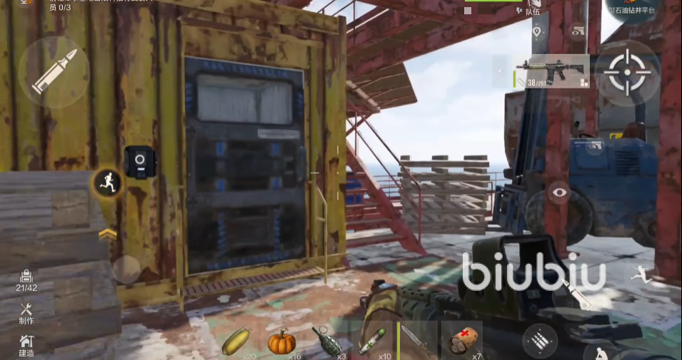 要先前往通电装置,在绿色建筑后面,通电激活后,就能开启蓝色房间的入口,房间里面有密码箱和电脑设备,不要触碰电脑,不然会延长时间,紧接着也可以搜集一下周围的物资,第一波资源收集齐后,马上会迎来第二波敌人,此时转移制高点进行防守反击。