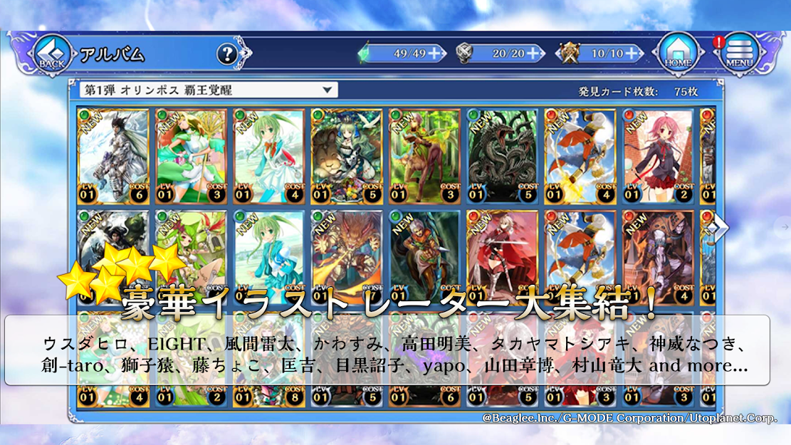 这是一款非常日式的手机卡牌游戏,游戏拥有完整的世界构架以及豪华的制作班底,不过游戏的上手难度却是非常的低。游戏中拥有多种单人玩法供大家选择,联动竞技玩法更是紧张刺激。