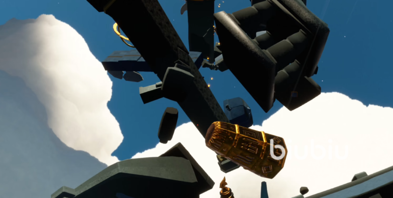 这些碎片仿佛没有重力一样,漂浮在空中,而玩家则可以通过跳跃的方式来攀爬,整体来看碎片叠加非常高,想要登顶还是会有一定难度的,最后的迷你光仔也比较好理解,就是在进入云巢时,手下的角色会变得非常小。