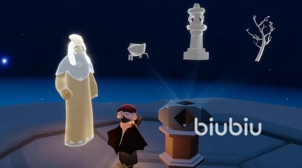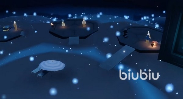 之后通过先祖返回活动场景,点燃眼前的灯笼然后场景会变化,随后先祖身边会出现3颗代币数量的烛火。然后前往遮阳伞所在的小沙滩处,这里也有两颗代币数量的烛火,以上是每日刷新的5颗代币。