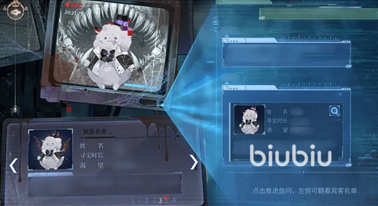 本次活动玩法以探索为主流程,只要消耗“理智护符”就能以剧情、对话、盘查和恐怖箱,四种不同的冒险形式和叶璀一起探索猩红堡,剧情和对话都比较简单,盘查是在路上会遇到意外访客的造访,我们需要仔细观察他的样貌特征、查看证件盘问其关键信息,与宾客名单对应,判断其是否是真人。