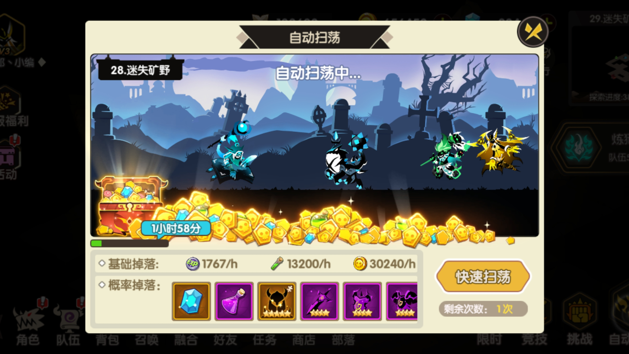 第二个就是对地图的探索,玩家在挑战主线任务的时候,会自动的获得一些紫色药水,这些药水数量可观,但是也是可以用来做一些突破的。