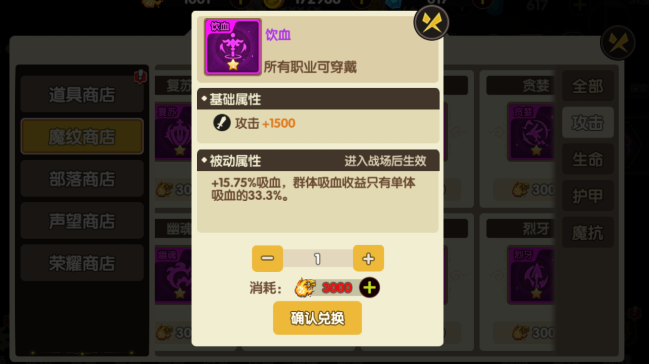 而魔纹的推荐小编优先推荐贪婪和饮血,贪婪可以提高英雄的能量回复能力,而饮血则是可以提高英雄的吸血,这两个都是在副本和主线中,非常实用的两种能力。所以对于魔纹的正确选择是非常非常重要的一件事,一定要按照己方的物理或者魔法英雄去合理的分配魔纹。