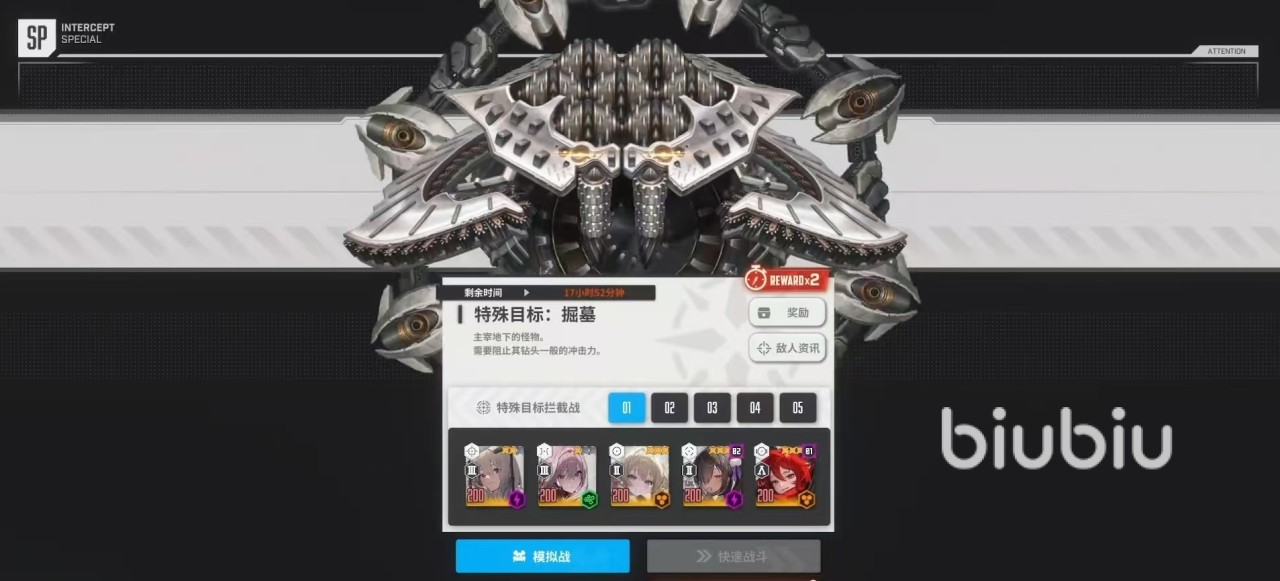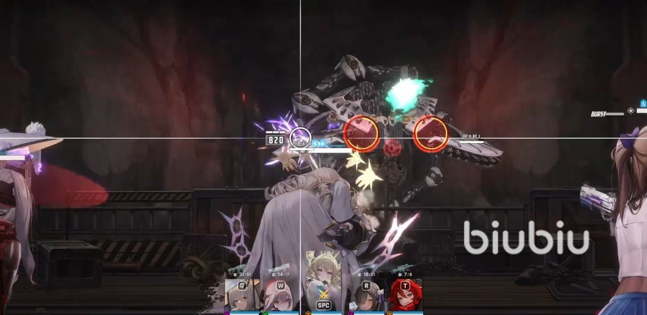 爆裂3选的两个喷子,舒哥、德雷克或者是梅登、尼夫等都可以,再加上一个副c神罚或者是红莲。当然也可以以上初音,初音可以提升换弹速度。在其他技巧方面,技能过场动画设置为播放简化版,因为在动画播放期间会有短暂时停效果,可以趁机来切换防御,让全队角色都换弹,并准备好瞄准红圈。在爆裂设置上,平时只需要设置自动,只有在二、三阶段进入前,要根据爆裂充能情况调整为手动,这样就是为了确保进入二、三阶段时有爆裂时间,能击破boss一次弱点。