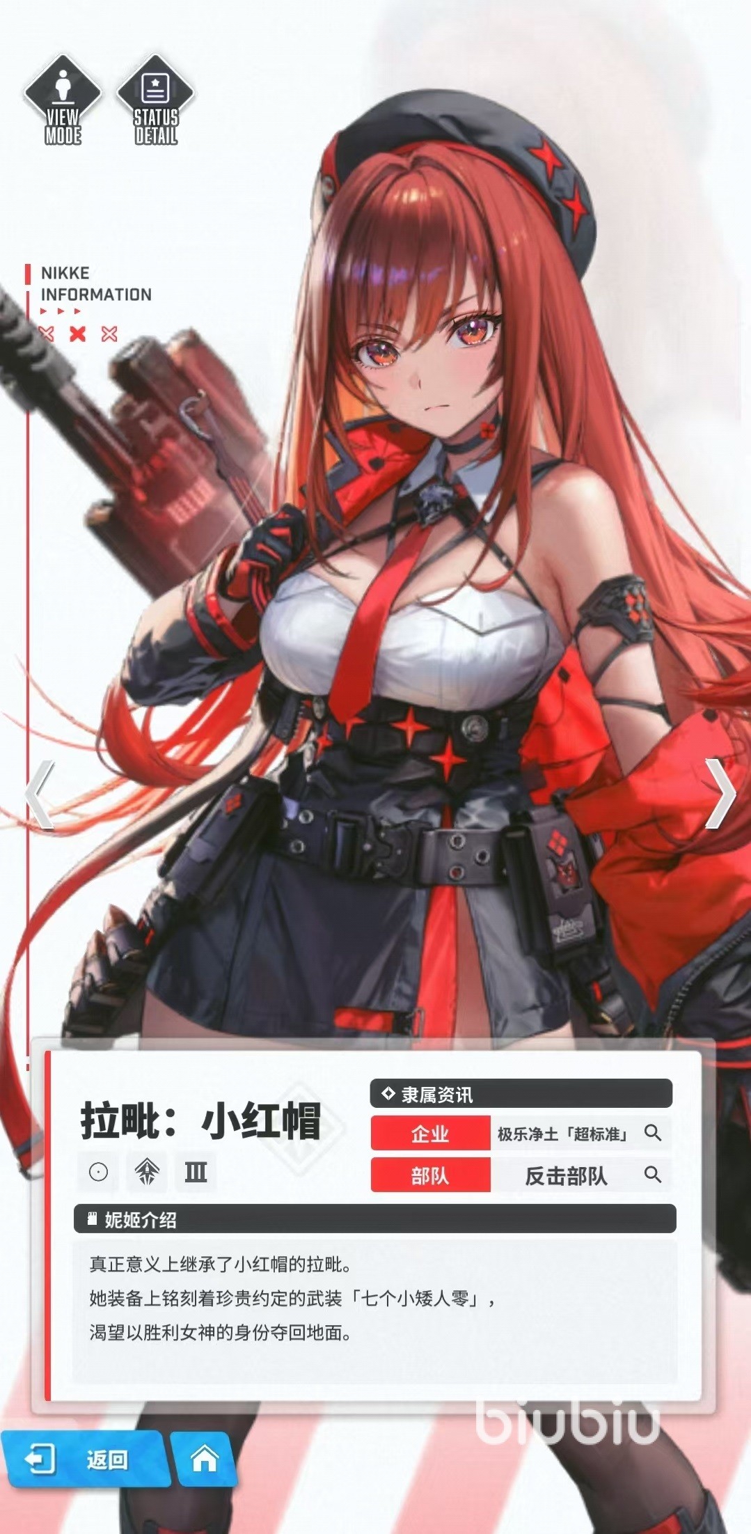2025年03月24日 17:14 来源:春羽旦小海狮拉毗小红帽和游戏中的另一个角色小红帽是两个不同的人物,在技能外形方面都有着较大的差别,所以大家一定要了解清楚,接下来小编就讲一下胜利女神新的希望拉毗小红帽怎么玩。拉毗小红帽是属于极乐净土超标准企业反击部队,自身式燃烧代码,对风压代码敌人有额外加成,使用机枪作为武器,是火力型输出职业。