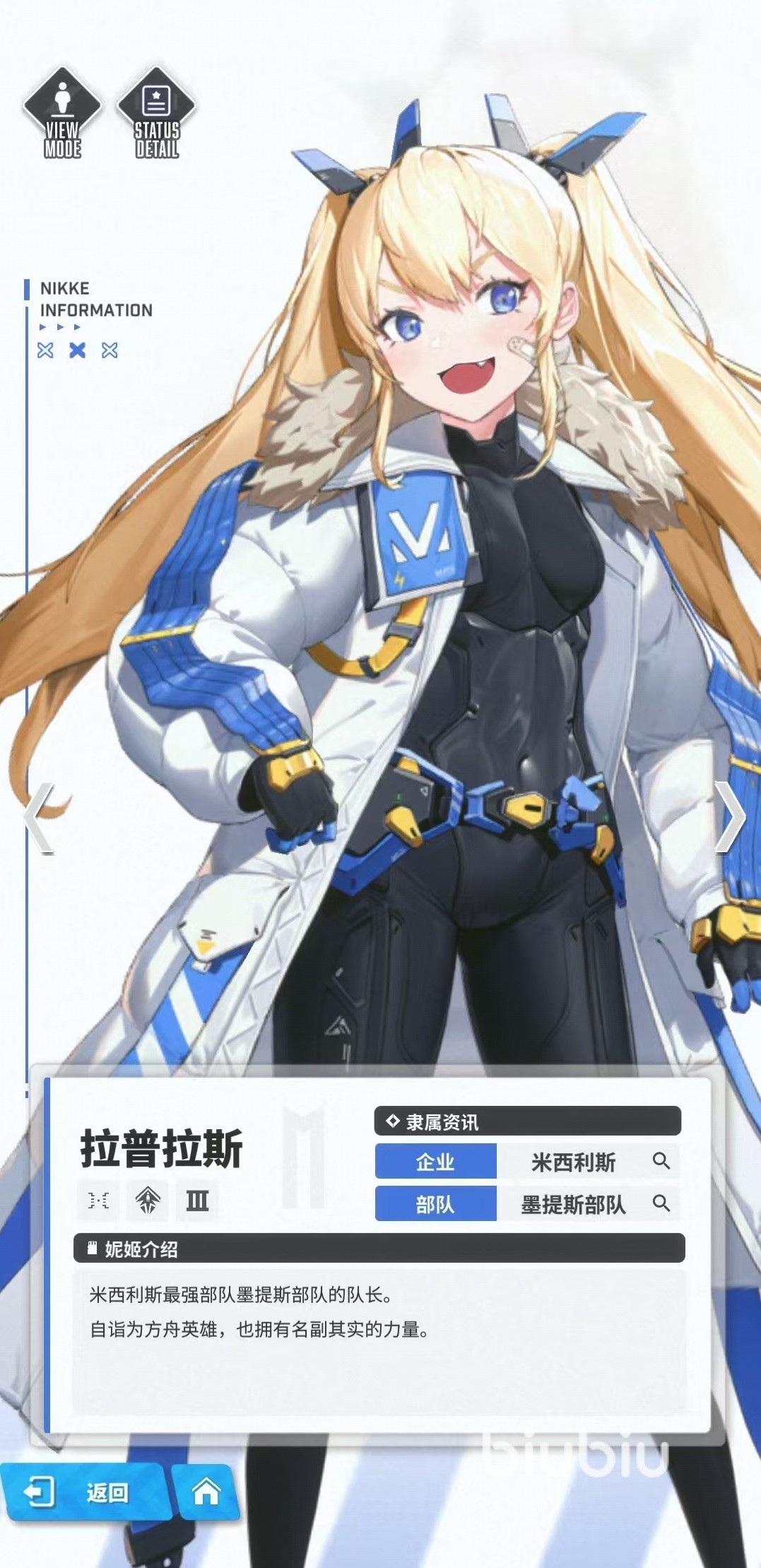 拉普拉斯是属于米西利斯企业墨提斯部队,是墨提斯部队的队长,拥有非常强的实力,自身是属于铁甲代码,使用的武器是发射器,攻击范围大,最大装弹数6发,换弹时间2.33秒钟,需要蓄力一秒达到全蓄力伤害。她的第1个被动英雄使命,在全蓄力攻击时,自身爆炸范围提升,而且可以叠加到5次。