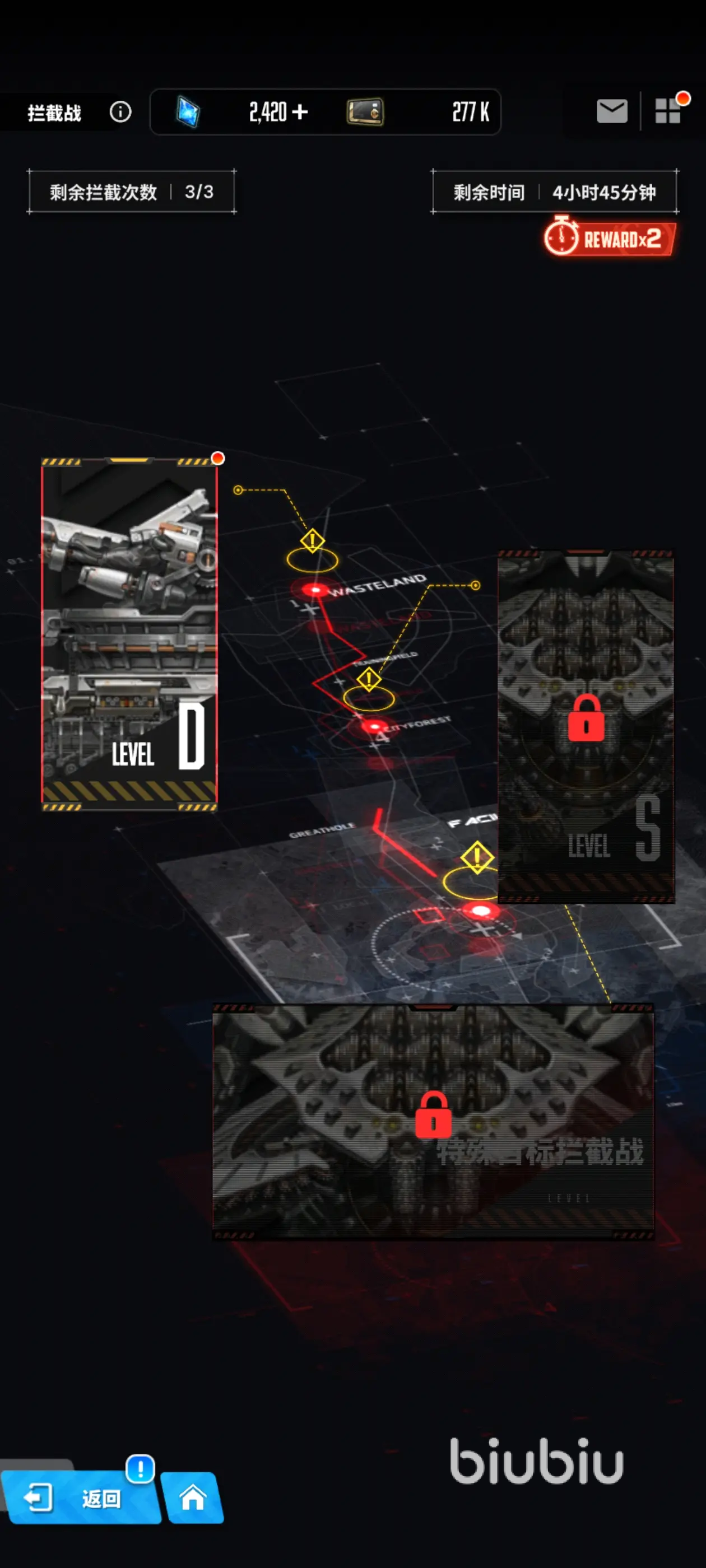 最后就是增强器,这个仪器的解锁需要5个角色达到200级,这时候同步器会变成增强器,这时候五个角色会被锁定,但是不再需要升级了,而是直接升级增强器的等级,那么其队伍里的角色都会享受到等级加成,直接省掉了很多繁琐的程序,但还是需要收集各类强化素材,而材料可以到拦截战获取。