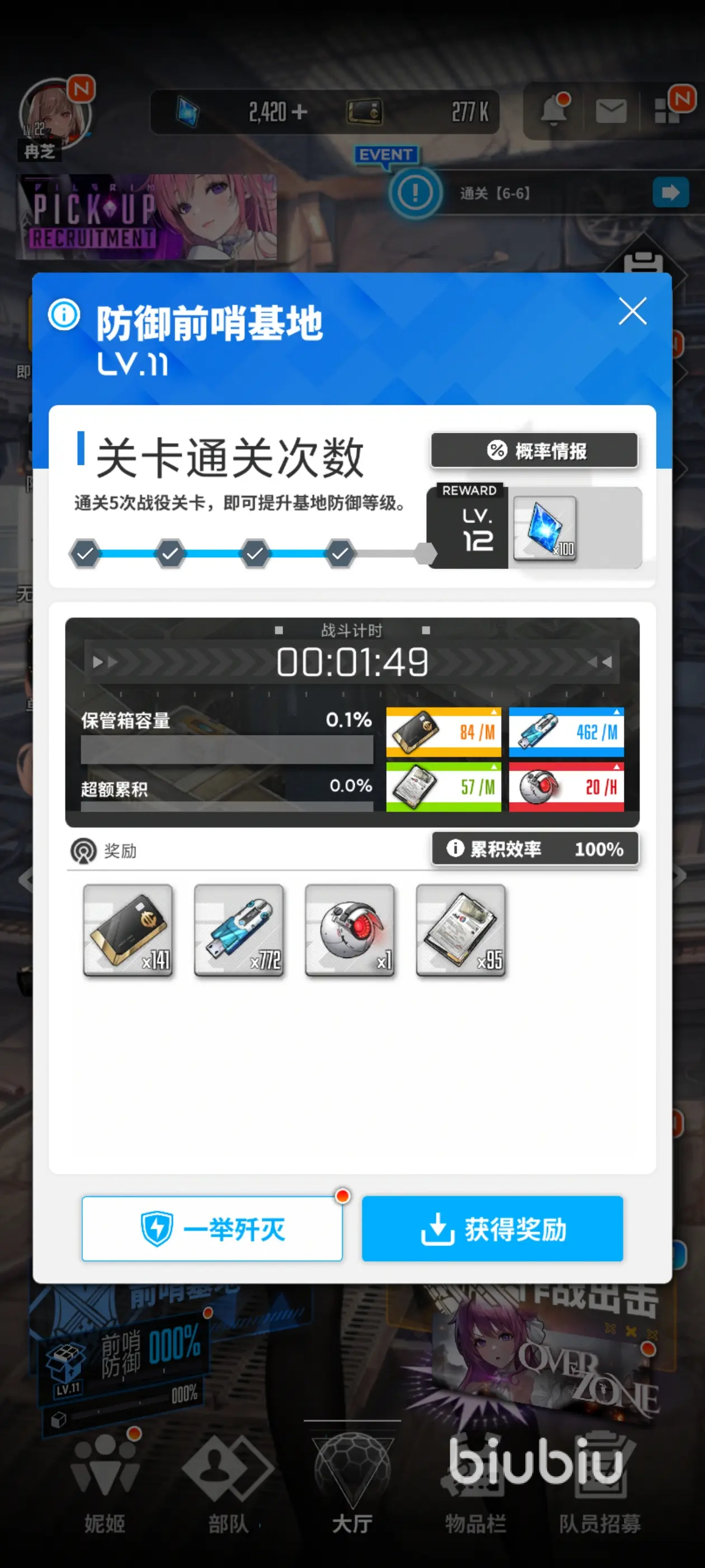 游戏中的升级其实很简单,那就是需要芯片以及核心道具来提升等级,基本上每个星级都有对应的等级,而这些材料的获取非常广泛,首先第一个就是防御前哨基地,这个主要要求玩家们每日登录,登录以后就能获得该基地内的所有奖励,而这些奖励就包括了升级所需要的芯片。