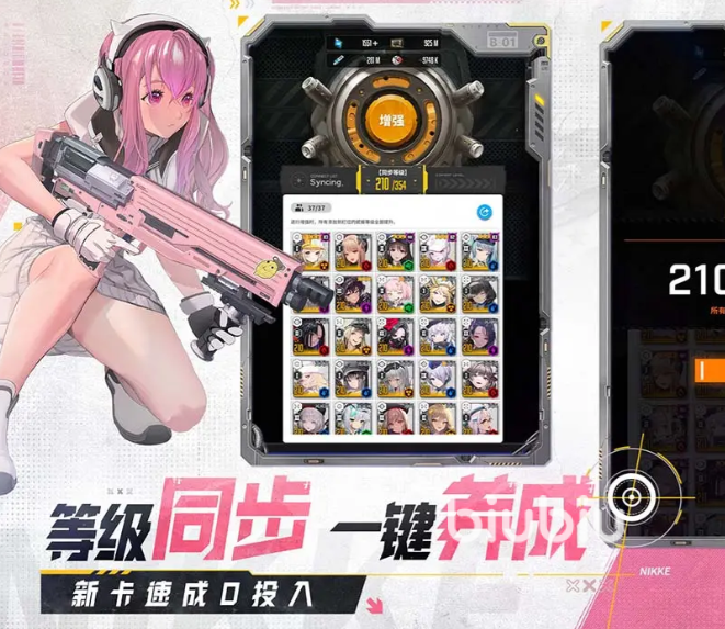 其次,游戏的核心玩法是创新的放置射击结合,它巧妙地将放置类游戏的轻松休闲与射击游戏的紧张刺激相结合。玩家可以组建自己的妮姬战队,让其自动进行战斗并积累资源。而在面对更加强大的敌人时,玩家则需要灵活调整策略、即时调度,以应对挑战。这种玩法设计充分满足了现代人在忙碌生活中对游戏休闲娱乐的需求,同时又不失战斗的紧张刺激感和策略深度。