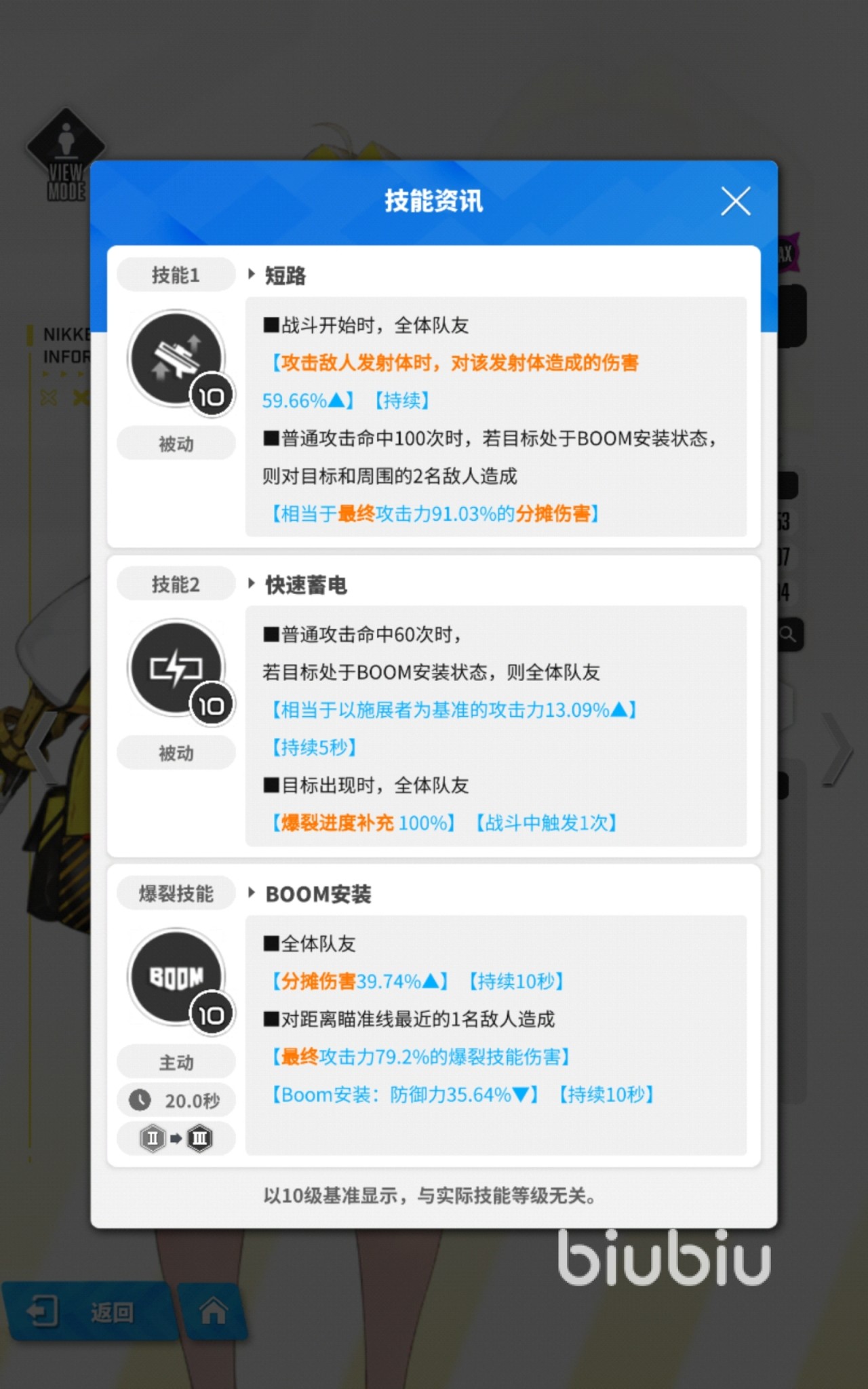 伊莱格的的被动技能短路,在战斗开始时直接提升全队对发射体的伤害,当普攻累计命中100次且目标处于BOOM状态时,可对目标及周围两名敌人造成额外的分摊伤害。这意味着在对抗群体敌人时,她的范围输出能力会显著提升。二技能快速蓄电在普攻60次命中BOOM状态目标后,能为全队提供基于自身攻击力一定比例的增益,持续5秒,配合装备加成可形成近乎常驻的攻击力提升效果。主动技能BOOM安装则是战术核心,不仅降低最近目标的防御力,还能让全队分摊伤害提升。