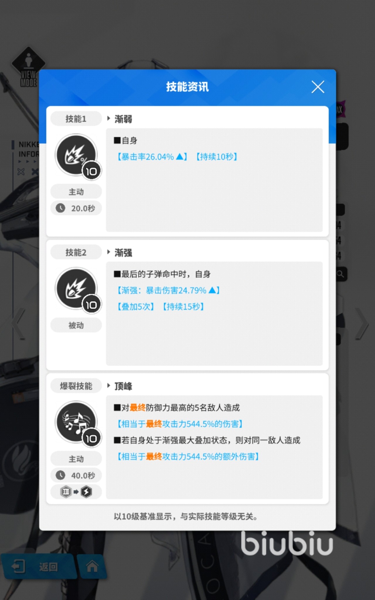 实战操作要把握三个节奏点,一是开场后快速叠加被动,建议站在掩体后方稳定输出;二是保留顶峰技能应对BOSS的防御强化阶段,例如拦截战S阶段BOSS释放护盾前的1.5秒预警期;三是渐强叠满时的群体眩晕效果,最好与队友的爆发技能同步释放。在自动战斗模式下,建议锁定优先攻击高防御目标,避免浪费破防效果。