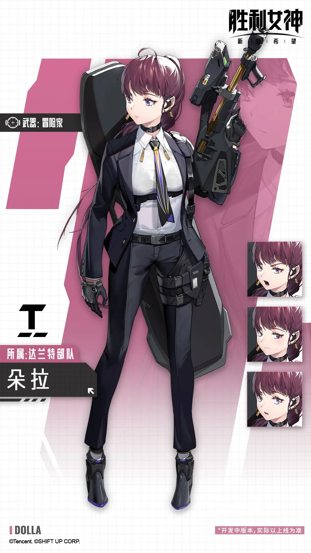 朵拉是一名SSR的风压属性的辅助型女神角色,使用的武器是狙击步枪。普通攻击对敌方目标打出自身攻击力69.04%的伤害,经过1秒蓄力后,全蓄力伤害可达到250%。1技能“企业家精神”,使用后全体有房的攻击力都提高8.88%。技能2“风险共享”,全爆裂时间开始时,全体友方通过不同其实次数获得不同效果,低阶效果会重复生效,1次课让大招冷却减少1.82秒;2次减少大招2.2秒冷却,3次大招冷却削减2.6秒;使用爆裂技能时,全体队友1次获得攻击力增强1.18%;2次可提高1.05%的暴击率,3次暴击伤害提升3.85%。爆裂技能”R&B射击”,对防御力最高的一名敌人打出最终攻击404.08%的爆裂伤害。