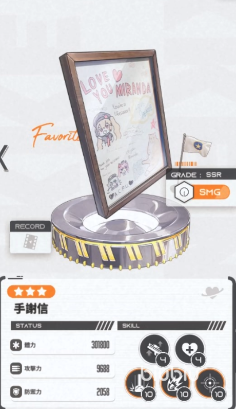 米兰达的SSR收集品“手写信”,饱含着对为市民忙碌奔波少女的感恩心意,对她而言意义非凡。其属性为体力301800、攻击力9688、防御力2058,别具收藏价值。