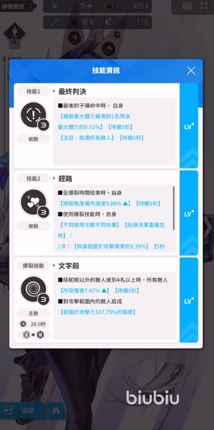 “文字杀”冷却时间20秒,为主动技能。当除妮姬以外的敌人达到4名以上时,可使所有敌人所受伤害提升6.11%,持续5秒,同时对攻击范围内的敌人造成相当于最终攻击力88.16%的伤害。该技能在面对群体敌人时,既能为团队提供增伤效果,又能打出可观的AOE伤害,有效提升团队整体输出能力,而且森大招CD也挺短,整体表现不错。