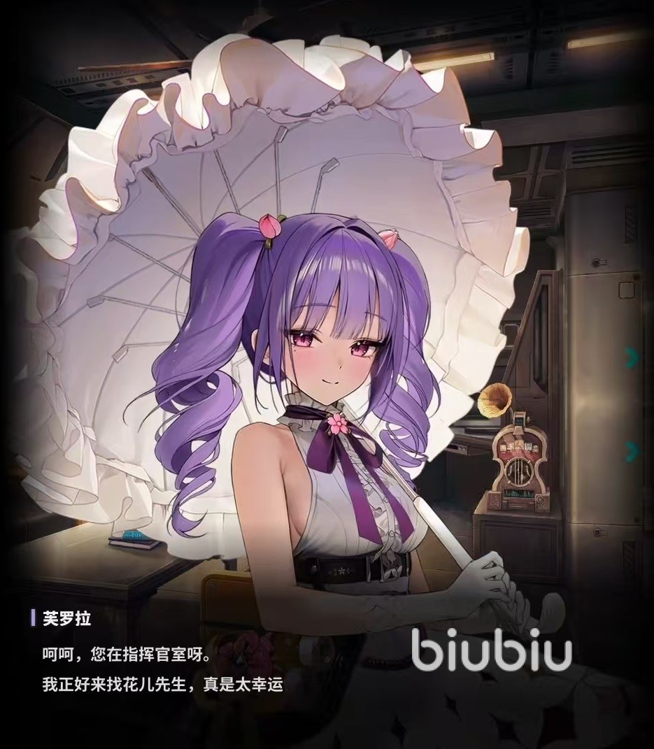 芙罗拉是属于电击属性角色,自身的定位是辅助型,她是隶属于植物园部队的角色,负责在方舟内养殖花草,用自己的方式向花草表达爱意。战斗中使用的武器是机枪,最大装弹数300发,换弹时间2.5秒,命中目标后可以造成5.57%攻击力的伤害。技能1矮牵牛,如果自身处于生存状态,那么自身和两侧的两名队友,将会得到施展者最大体力值1%恢复,这个效果间隔1秒钟,持续生效。体力恢复量提升2.36%,叠加5次,持续生效。在发动100次普通攻击时,电击代码的全体队友可叠加的增益效果叠加量增加1次。