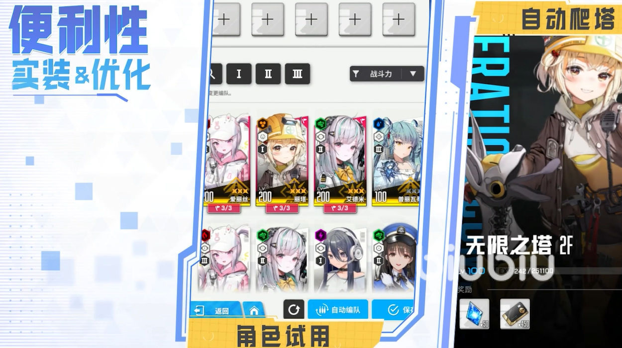 除了射击,游戏还融合了角色养成和策略搭配,每位妮姬都有独特的技能和背景故事,玩家可以通过升级、装备强化和羁绊剧情提升战力。此外,游戏还包含放置挂机玩法,离线也能获取资源,适合休闲玩家,无需花费长时间在游戏当中。