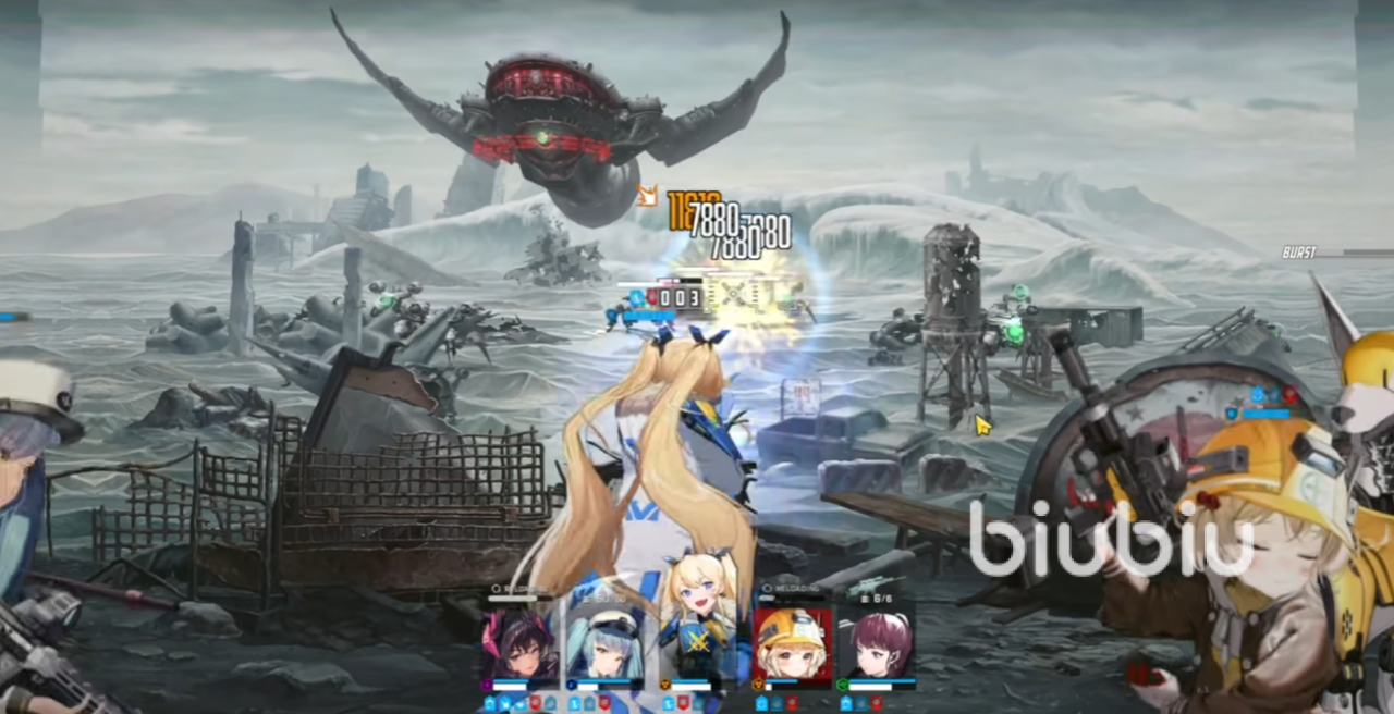 第一轮boss在攻击完后会进行发呆,这时候要手动清理第二波小怪,此时和第一波一样,要尽量攒爆裂,同时注意boss的攻击要躲掩体。之后的飞行小怪可以不用管,B0SS闪现会丢失目标,系统会自动清理这些小怪,同时也要多注意boss的攻击要注意躲开。如果爆裂能量条跟不上小怪刷新速度,就自己手动清理一波。之后还会出现一些浮游生物一样的飞行怪,不用着急管,要优先清理boss下方的小怪,然后在清理飞行怪。boss的第二个弹幕攻击,如果队伍满血可以不用躲,可以硬扛一次清理小怪。