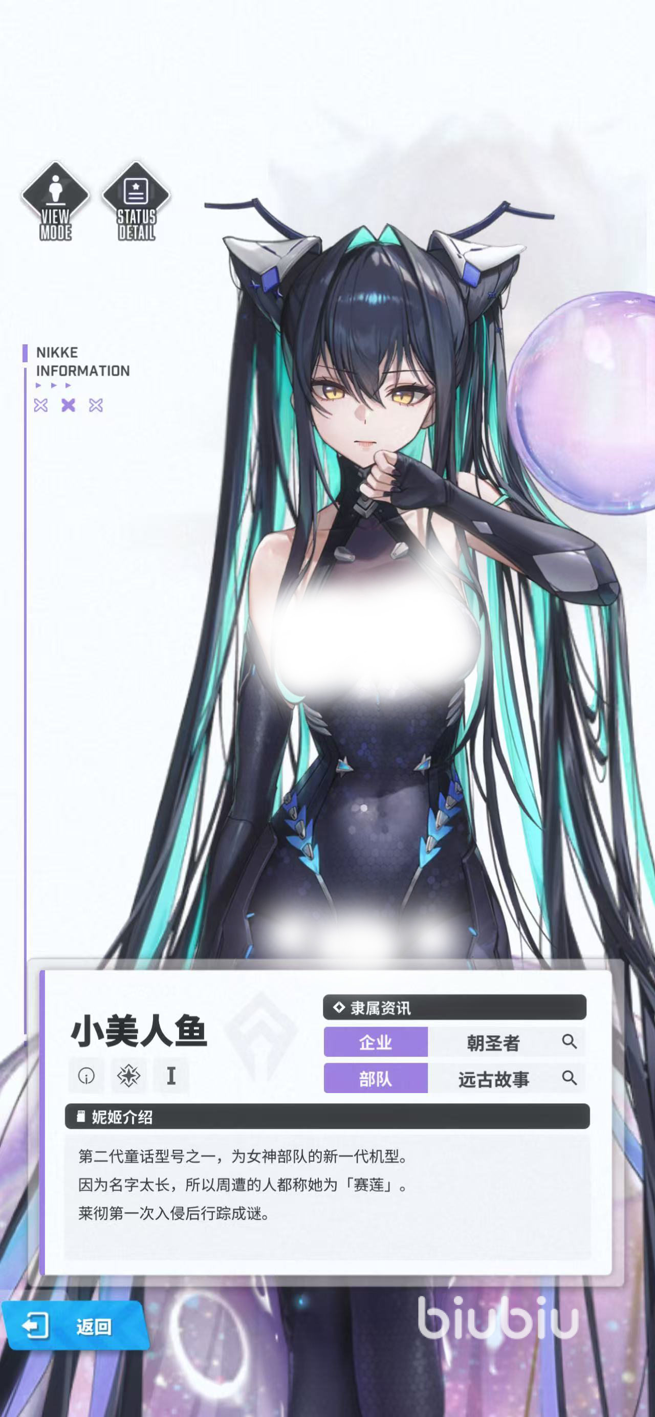 小美人鱼作为一个可盐可甜的角色,在游戏中隶属于朝圣者企业以及远古故事部位。作为第二代童话型号之一,是女神部队的新一代机型。因为名字太长,所以周遭的人都称她为「赛莲」,然后在莱彻第一次入侵后行踪成谜。