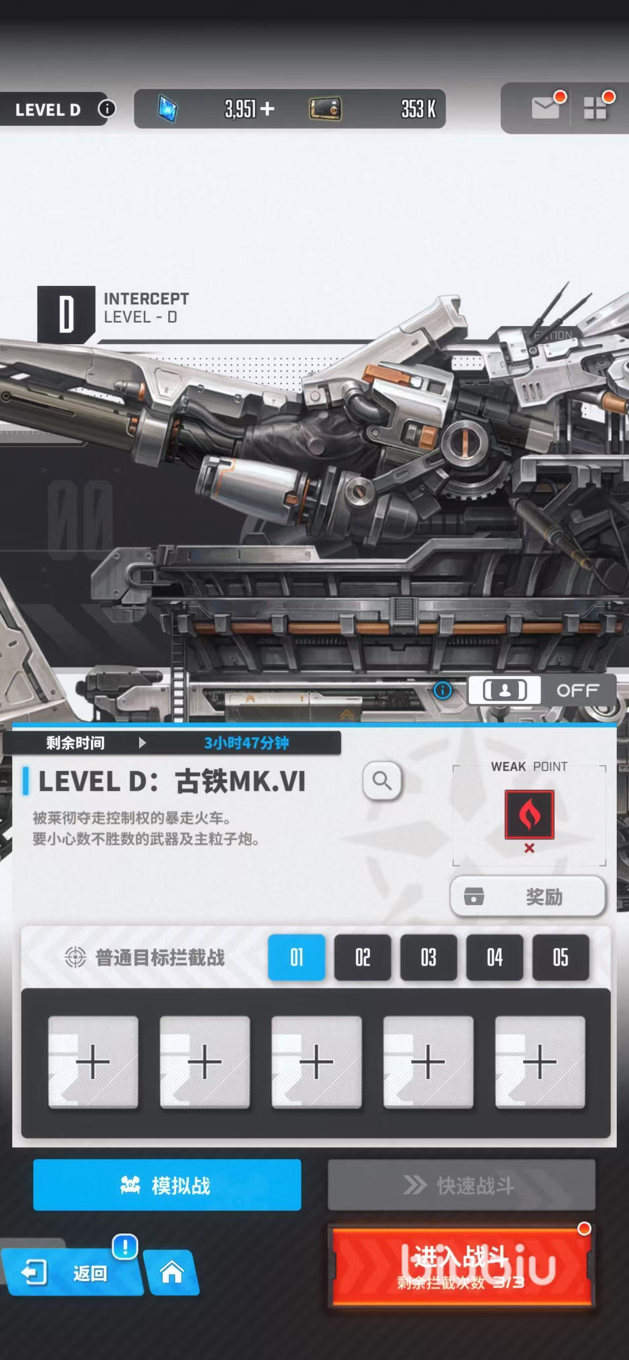 模式室听起来其实很好理解,就像是训练室一样,可以根据自己的战斗需求选择难度和闯关地区。若是首次通关模拟设置的话,就可以获得相应的奖励,不过通过一次之后,即可解锁快速模拟。若是快速模拟也通关了,那也可以获得一些次级奖励。
