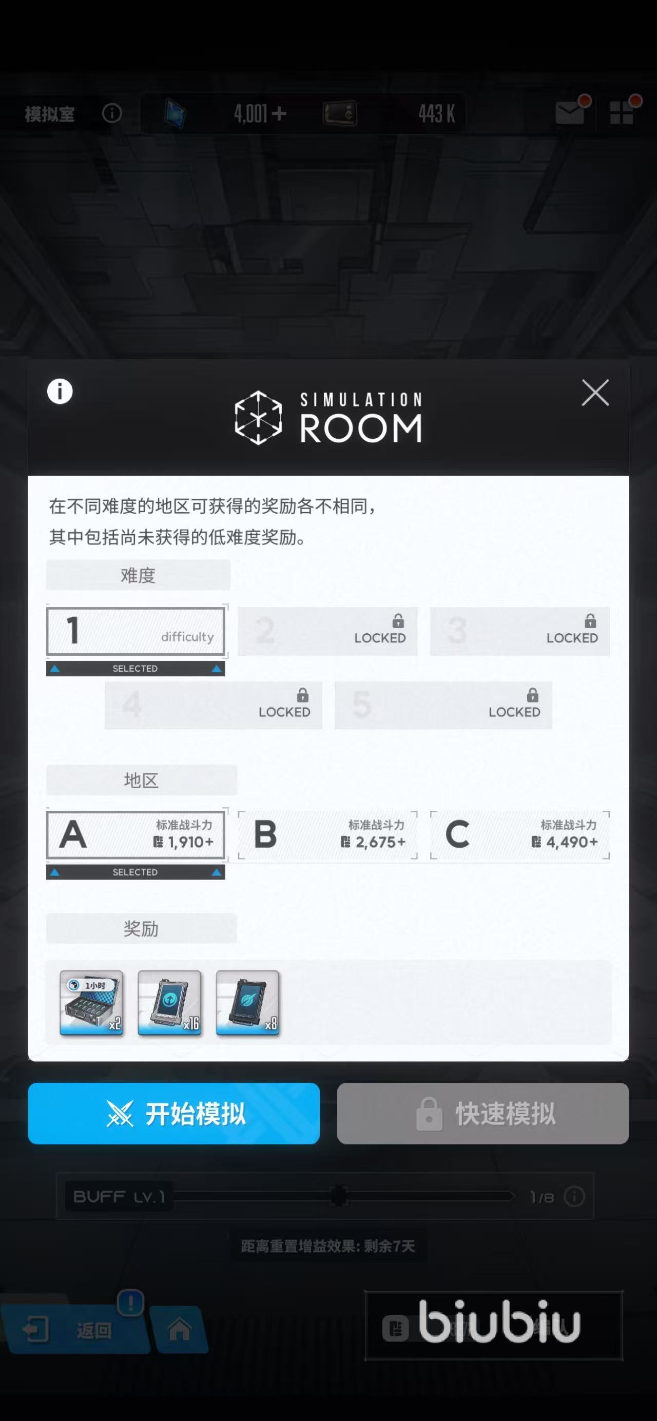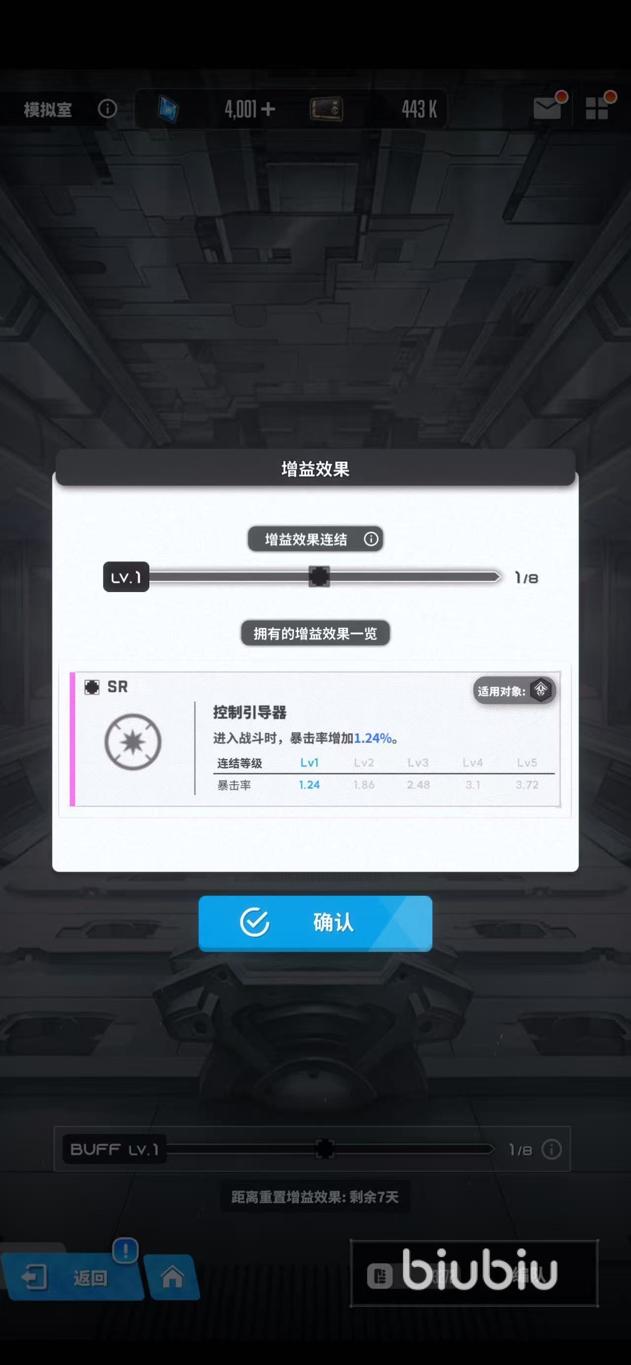 在开启作战之前,大家还可以看一下当次模拟战能够获得的buff是什么?例如可以获得暴击伤害加成又或者攻击力,所以这时就可以上阵一些适合打爆发伤害的角色。可以最大化利用这种buff效果,当你所通过的关卡越来越多后,就可以获得的buff数量也越多,最多8种。