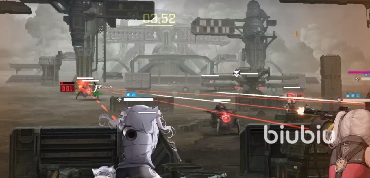 在进行推图的时候,建议是调整站位来自动战斗,手动操作关键技能就可以了,有些关卡里面的boss会释放激光、飞弹这类的攻击,这个时候就需要玩家去主动切换防御状态来保护自己,或是集火去进行破盾来快速打伤害。