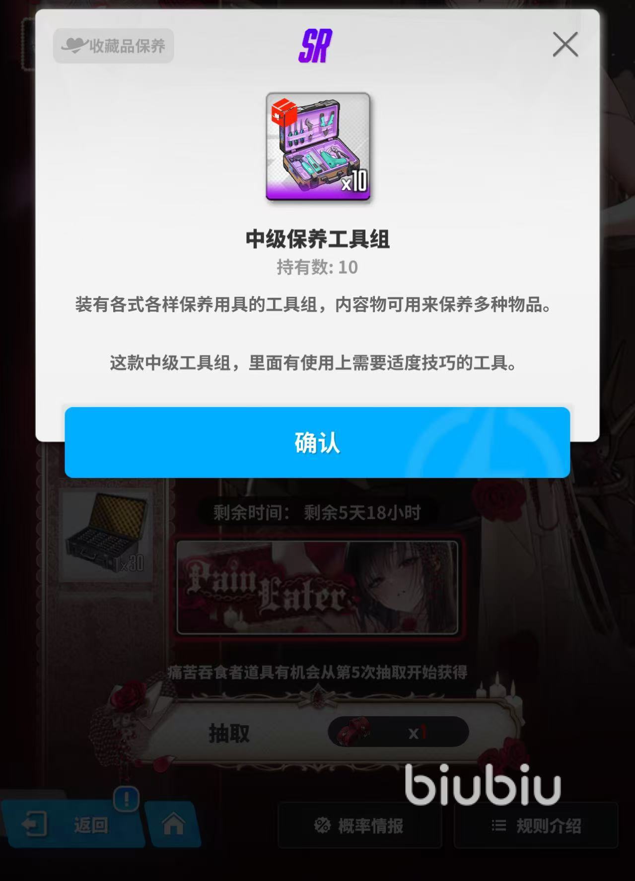 当然如果你想要获取中级保养工具套装,同样包含着丰富多变的工具,可以拿来保养各种角色或者装备。只不过使用起来需要一定的技巧,所以对于萌新来说,最好还是使用初学者工具。