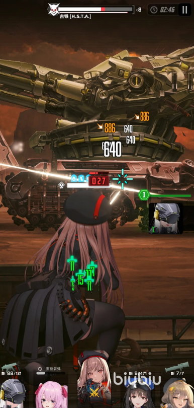 画皮使用步枪诡画箱来当做武器,诡画箱最大子弹数为20,换弹时间1秒,会对目标造成17.22%攻击力的伤害,她的被动“人格复写”会在战斗开始时,模仿A复制攻击力最高的一位队友30.02%的攻击力,该效果会一直持续。